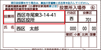 当日投票所で投票する場合は、入場券に記載されている投票所に行きましょう!