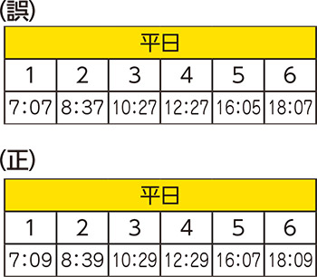 3月1日発行の本紙1面「小針駅乗り入れ」の時刻表の内、平日「小針駅前(内回り)」に誤りがありました。