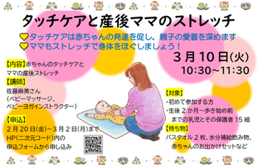 「タッチケアと産後ママのストレッチ」申込フォーム(外部サイト)