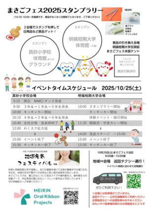 明倫短期大学の学生や大学のある真砂地区の多様な団体が連携する「Meirin Oral Ribbon Projects」が文化祭イベントを開催します!健口文化啓発を主たる目的としながら、こどもも大人も楽しめるイベントで地域活性化を目指します!