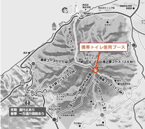 灯台コース登山口にある公衆トイレは、修繕工事のため、上記の期間使用できません。