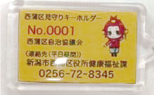- 西蒲区役所か西蒲区内の各出張所で申請してください。審査後にキーホルダーを2個と、反射シール4枚を交付します