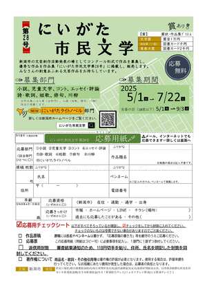 令和7年11月23日(日曜・祝日)に「にいがた市民文学」を発刊し、表彰式を行う予定です。