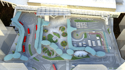 万代広場の全面供用は2027年春を目標に整備を進めています。なお、広場整備にあたっては、既存の施設配置(バス乗降場、タクシーのりば等)や利用者動線を変更しながら、段階的に整備を進めていきます。今後の整備スケジュールと各段階における施設配置(利用動線を含む)など、下記リンク先動画にて詳しく紹介しております。