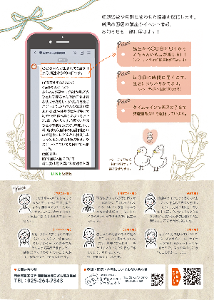 下記配信内容に加えて、新潟市の子育てサービスや西区の子育て講座、乳幼児向けのイベント情報などを随時お届けいたします。