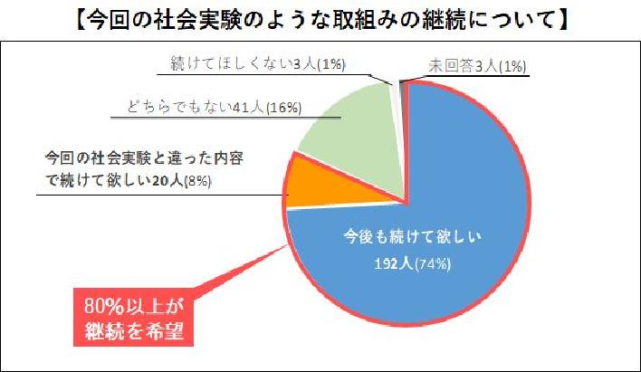 取り組みの継続については、80%以上が取り組みの継続を望むものとなりました。
