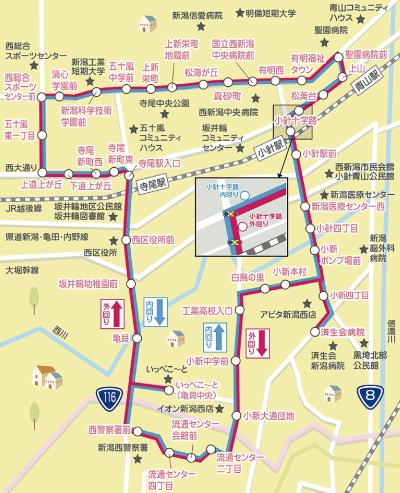 | 新潟医療センター西 | 8:05 | 10:08 | 12:07 | 14:08 | 16:25 |