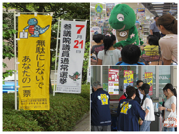 選挙が行われていない平常時には、新潟まつり大民謡流しや区民まつりなどのイベント会場で「明るい選挙」を呼びかける街頭啓発、小学校での模擬選挙(デザート議員選挙)の実施などを、選挙が行われているときは、商業施設や繁華街で「投票参加」を呼びかける街頭啓発を実施しています。